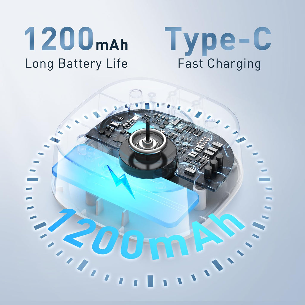 Equipped with a 1200mAh rechargeable battery, the device supports USB fast charging and provides up to 8 cleaning cycles per charge. With an IP65 waterproof rating, it’s safe for everyday use—just avoid full immersion.